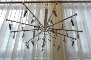 Cách giải pháp cho các mẹ bỉm sữa tiết kiệm không gian chính là sản phẩm móc chùm phơi đồ em bé giúp cho quần áo trực tiếp với ánh nắng, diệt vi khuẩn tốt.